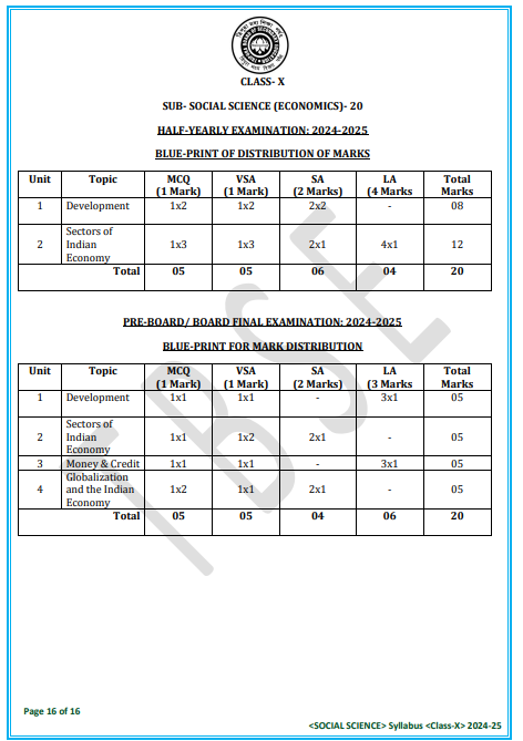 Class 10 TBSE Syllabus 2025 All PDF